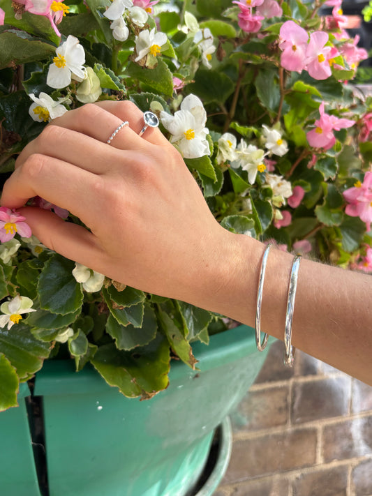 Classic silver bangles made in 3 sizes. They look beautiful layered with our other bracelets in the collection.